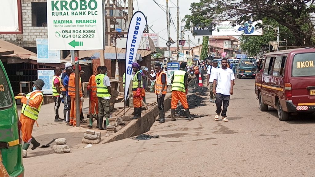 In a concerted effort to promote environmental cleanliness, the BuzStopBoys teamed up with the Greater Accra Regional Minister, Hon. Mrs. Linda Ocloo, and key security agencies to embark on a massive clean-up exercise in Madina on Friday as part of the National Sanitation Day initiative.